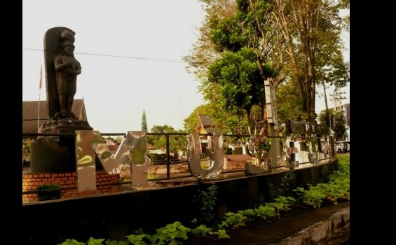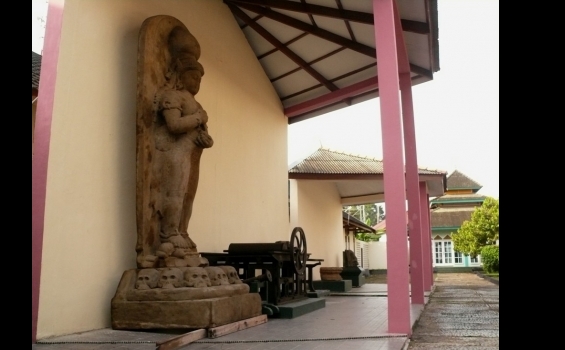 REPLIKA kedua Bhairawa yang dipajang di halaman depan Museum Negeri Jambi dilihat dari arah Simpang Museum/Tugu Anggrek. (TRIBUN JAMBI/YOSEPH KELIK PRIRAHAYANTO)