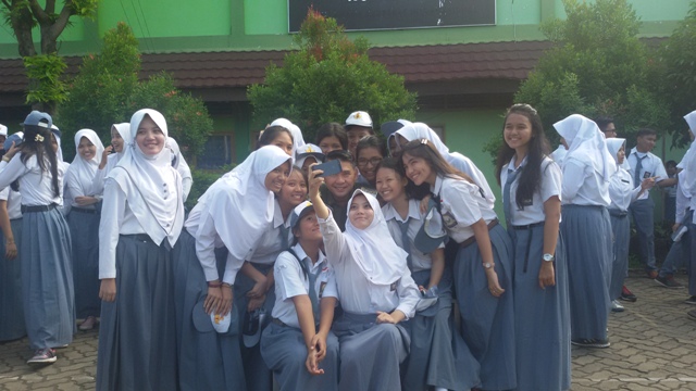 Wali Kota Jambi Sy Fasha menjadi pembina upacara di SMAN 1 Kota Jambi, Senin (11/1/2016). Setelah itu selfie bersama guru dan murid.