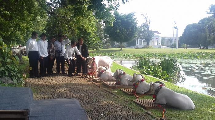 Terlihat raut wajah gembira saat para peternak domba memasuki halaman Istana Bogor. Tak menyia-nyiakan