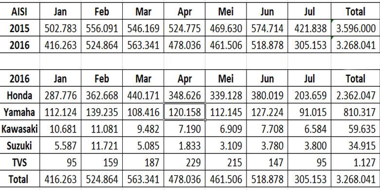 Sigit Kumala, Ketua Bidang Komersial Asosisasi Industri Sepedamotor Indonesia (AISI) memprediksi kalau penjualan pada bulan Agustus 2016 mulai kembali normal. Penurunan yang terjadi pada bulan Juli, karena hari aktif yang terbilang sedikit dibanding bulan lain.