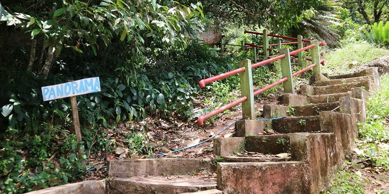 KompasTravel sempat mencoba menyusuri tangga untuk menuju puncak Bukit Panorama. Saya mengawali perjalanan pada saat matahari benar-benar berada pada titik kulminasinya.
