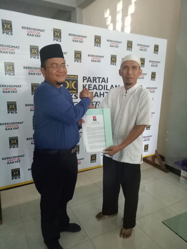 Kehadiran Maulana langsung disambut ketua DPD PKS Kota Jambi, Heru. Dia langsung menyerahkan formulir pendaftaran calon pada Maulana.