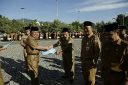 TRIBUNJAMBI.COM, SUNGAIPENUH - Hasil evaluasi kinerja Satuan Kerja Perangkat Daerah (SKPD) lingkup Pemkot Sungai Penuh triwulan II Tahun 2017 diserahkan kepada masing-masing SKPD dan sekolah-sekolah. Penyerahan hasil evaluasi kinerja tersebut diserahkan Sekretaris Daerah Drs. Pusri Amsyi, pada pelaksanaan apel kerja di lapangan Kantor Wali Kota Sungai Penuh dan disaksikan para pegawai negeri sipil dalam Kota Sungai Penuh, Senin (7/8).