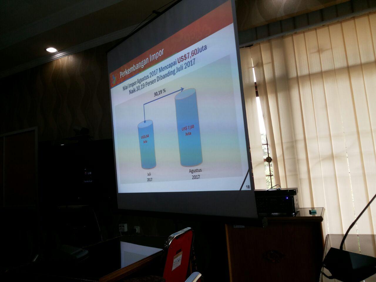 ”Pada bulan ini kenaikan tertinggi impor berasal Singapura dan Kanada yang keduanya naik masing-masing sebesar 2.471,66 persen dan 90,69 persen,” kata Kepala Badan Pusat Statistik (BPS) Provinsi Jambi Dadang Hardiwan. Senin, (16/10).