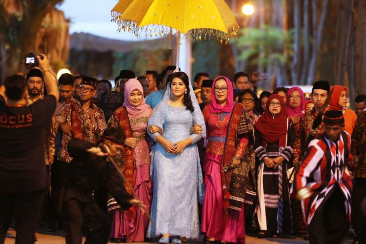 Kenakan Gaun Berwarna Biru Langit, Kahiyang Disambut Musik Tradisional