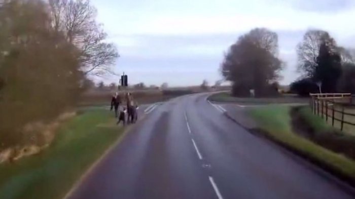 Sebuah rekaman dari dash cam pengemudi truk menunjukkan anak-anak yang hampir saja tertabrak.