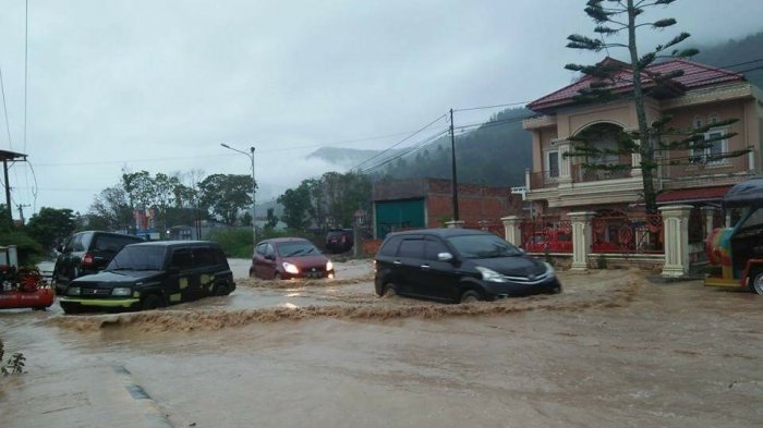 Banjir Bandang Terobos Ruas Jalan Kota Sungai Penuh, Puluhan Rumah Tergenang