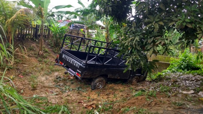 TRIBUNJAMBI.COM, SENGETI - Masyarakat RT 06, Desa Berembang, Kecamatan Sekernan, Kabupaten Muarojambi, dihebohkan dengan kejadian mobil pikap ke luar jalur jalan. Peristiwa itu terjadi pada Selasa (20/2) sekira pukul 01.30.