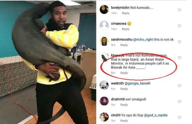 Saat ia menggunggah video menggendong sejenis kadal besar berwarna hitam itu, banyak netizen yang ngeri dan kagum.