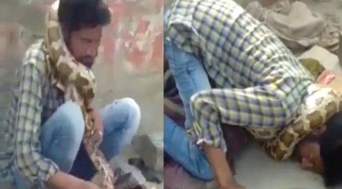 TRIBUNJAMBI.COM - Sebuah pertunjukan ular keliling yang berakhir di rumah sakit. Hal itulah yang terjadi dalam sebuah pertunjukan dengan ular piton di kota Mau, Uttar Pradesh, India.