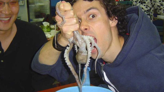 Kuliner ini terbuat dari gurita yang masih hidup.