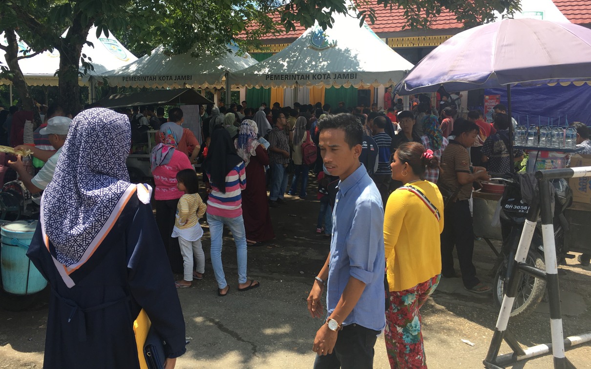 TRIBUNJAMBI.COM - Pembuatan E-KTP di kantor gubernur di hari terakhir Kamis (19/4) berjalan lancar.