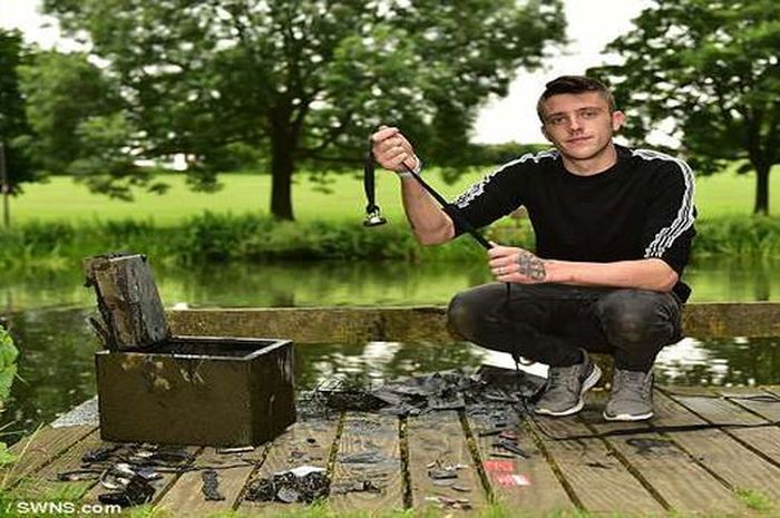 Ia berhasil mendapatkan sebuah kotak berisi benda berharga di dasar sebuah danau di Taman Pitville di Cheltenham, Inggris.