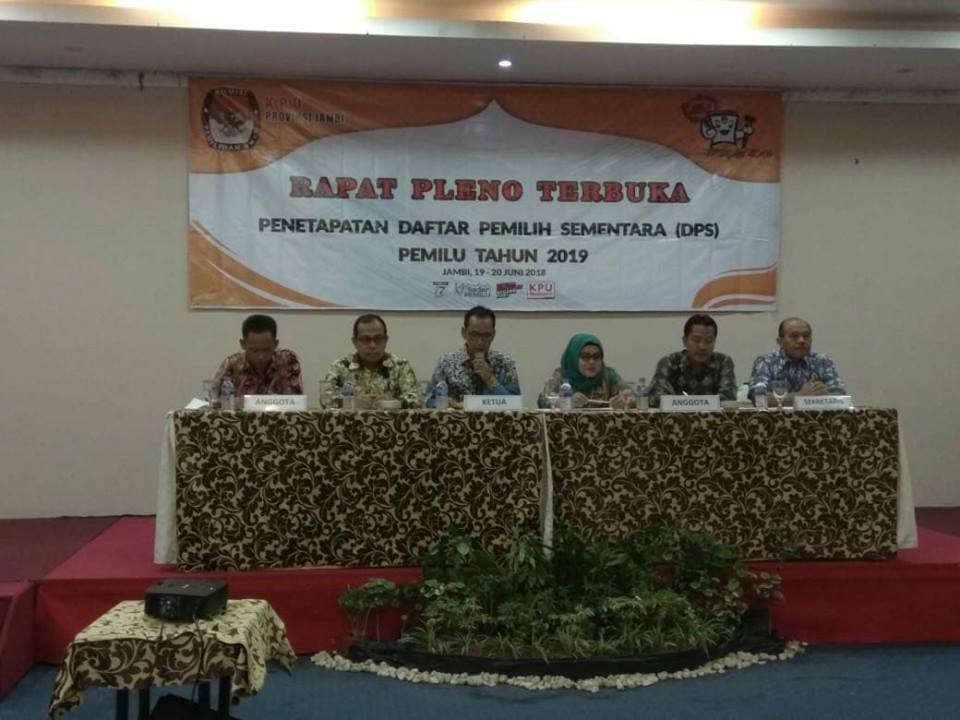 Bertempat di Resort Hotel Rumah Kito, pihak KPU Provinsi Jambi melakukan rapat pleno terbuka penetapan daftar pemilih sementara pemilu 2019. Rapat pleno itu sendiri langsung dipimpin oleh ketua KPU Provinsi Jambi, M.Subhan dan diikuti oleh seluruh komisioner KPU Provinsi Jambi.