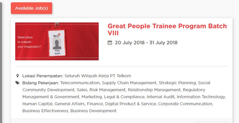 "Jadilah “Great People”, bintang kehidupan bukan hanya bintang pelajar dengan bergabung bersama kami. Setiap langkah kegemilangan adalah bakti kita turut membesarkan negeri. Telkom Indonesia untuk Indonesia," tulis laman PT Telkom Indonesia.