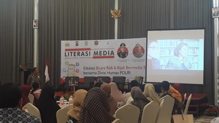 TRIBUNJAMBI.COM, JAMBI - Divisi Humas Mabes Polri, Selasa (25/9) pagi, menggelar diskusi bertajuk Literasi Media. Kegiatan yang dilaksanakan di Swisbell Hotel, Kota Jambi ini dihadiri ratusan mahasiswa.