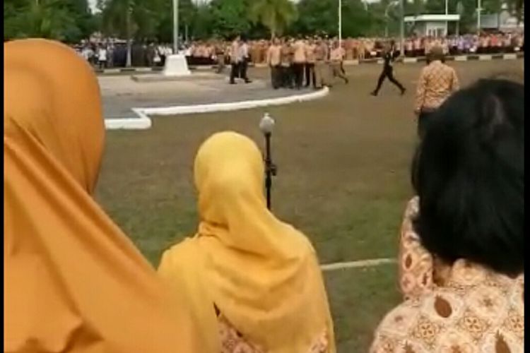 Dalam video yang bereda, perkelahian antara dua pejabat Pemerintah Kota Prabumulih tersebut terjadi di tengah lapangan saat upacara apel pagi yang diikuti ratusan pegawai Pemkot Prabumulih di Palembang.