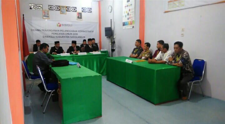 Sidang putusan dugaan pelanggaran administratif Pemilu 2019 akan dibacakan oleh Bawaslu Sarolangun hari ini, Rabu (24/10).