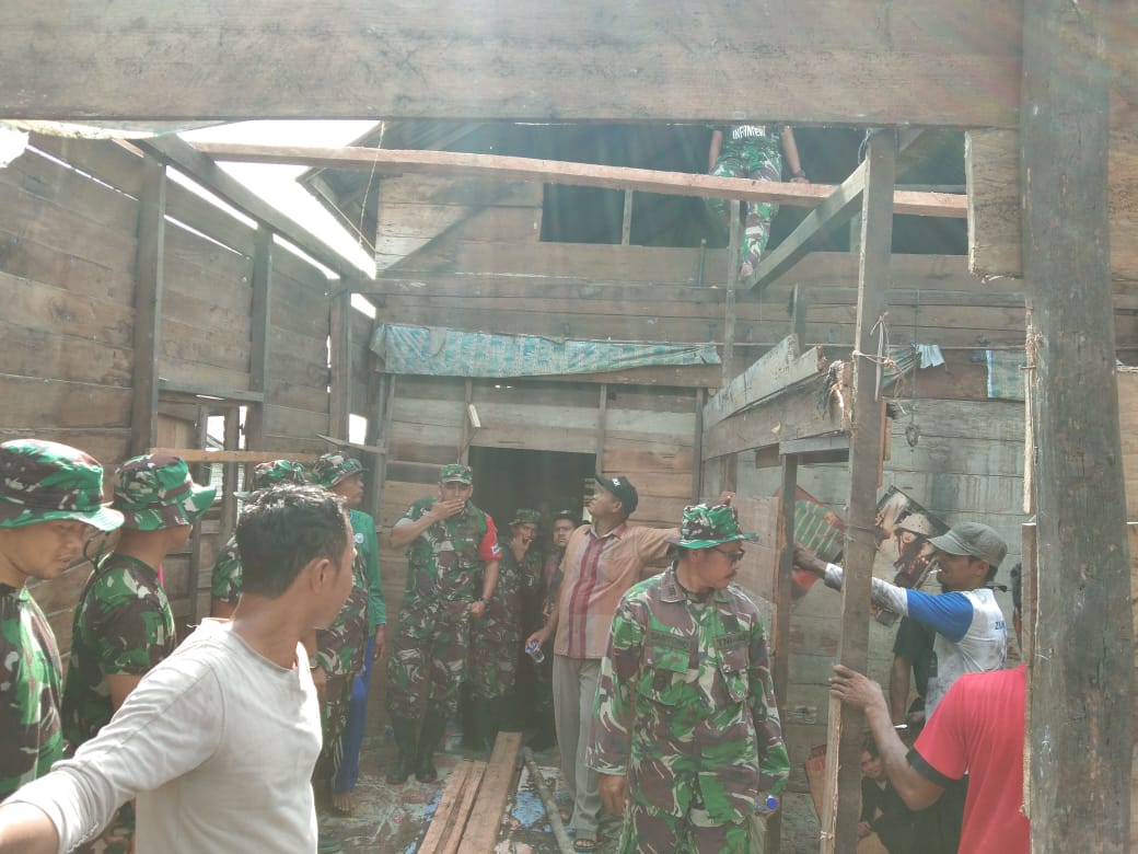 Bantuan Rehab rumah tidak layak huni (RTLH) pada Program TNI Manunggal Membangun Desa (TMMD) Reguler ke-103 Tahun anggaran 2018 di Kampung Sungai Ayam, Desa Pangkal Duri, Kecamatan Mendahara Kabupaten Tanjab Timur, satu persatu mulai dikerjakan. Rabu (31/10/2018)
