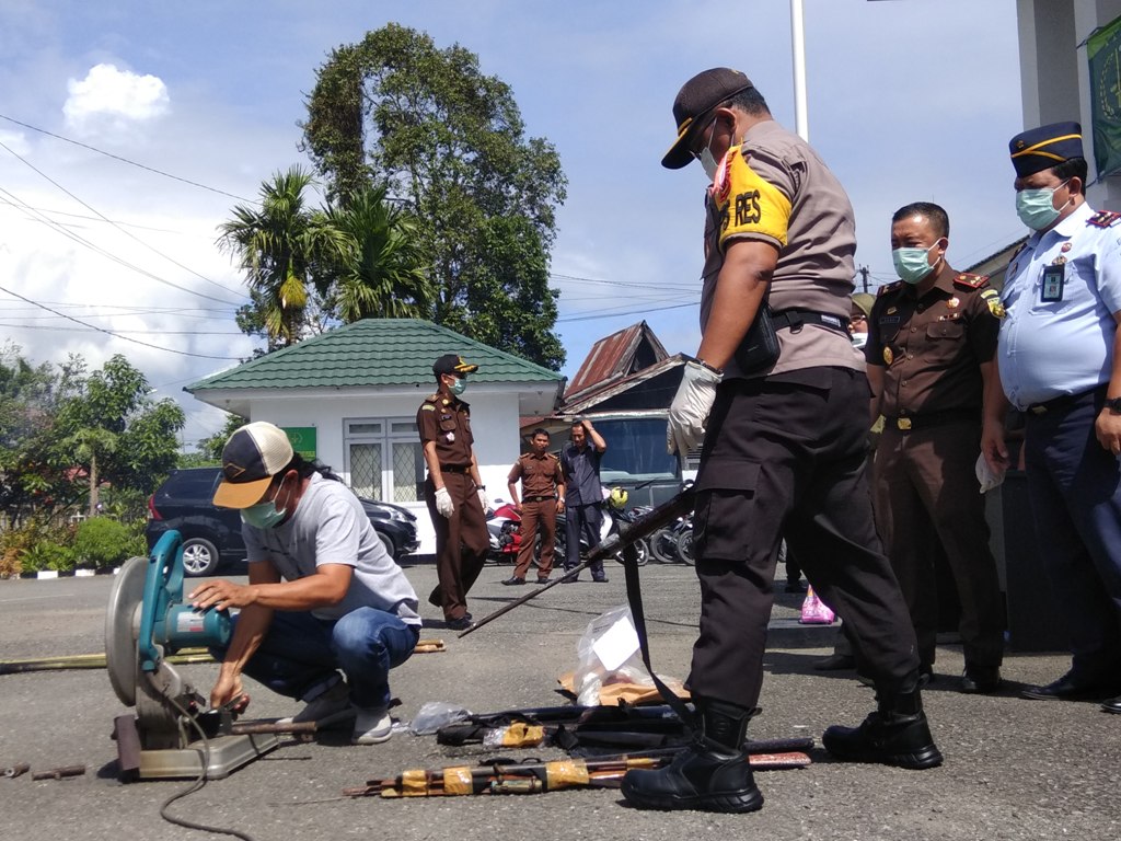 Pasalnya di Kejari Sungai Penuh, digelar pemusnahan barang bukti hasil kejahatan yang telah memperolah kekuatan hukum. Barang bukti yang dimusnahkan tersebut, terdiri dari sejumlah senjata api rakitan, puluhan paket sabu-sabu dan ganja serta barang bukti lainnya seperti kosmetik ilegal.