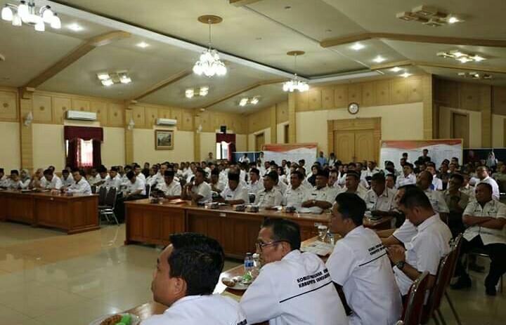 TRIBUNJAMBI.COM, SAROLANGUN - KPUD Sarolangun, berkoordinasi dan mensoalsialiasikan tentang daftar pemilih tetap (DPT) dihadapan kepala desa se Kabupaten Sarolangun, Rabu (6/2/2019) di ruang pola Kantor Bupati Sarolangun.