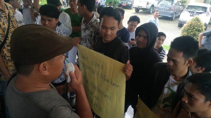 TRIBUNJANBI.COM, JAMBI - Puluhan masa yang tergabung dalam aliasi penyelamat hutan tadah air, melakukan aksi unjuk rasa di Kantor Balai Pengelolaan Hutan Produksi (BPHP) Wilayah IV Jambi, di kawasan Telanaipura, Kota Jambi, Selasa (2/4/2019).