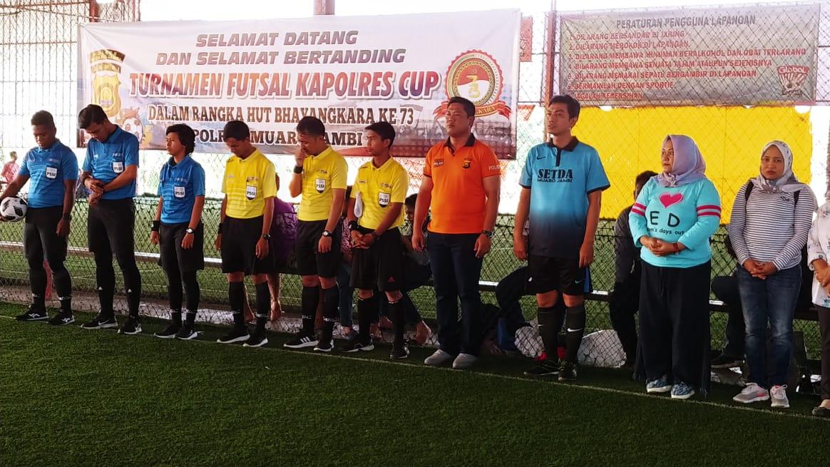 TRIBUNJAMBI.COM, SENGETI - Polres Muarojambi melakukan kegiatan turnamen Futsal, sebagai bentuk rangkaian untuk menyambut Hari Ulang Tahun (HUT) Bhayangkara ke 73 pada 1 Juli 2019 mendatang.