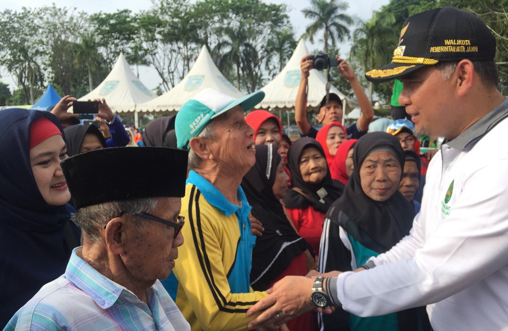Sekitar pukul 07.00 WIB pagi para lansia ini langsung mengikuti senam sehat bersama Wali Kota Jambi Syarif Fasha dan Wakil Walikota Jambi Maulana. Selain itu, lansia juga diberikan berbagai bingkisan. Lansia ini dikumpulkan dari 11 kecamatan yang ada di Kota Jambi.