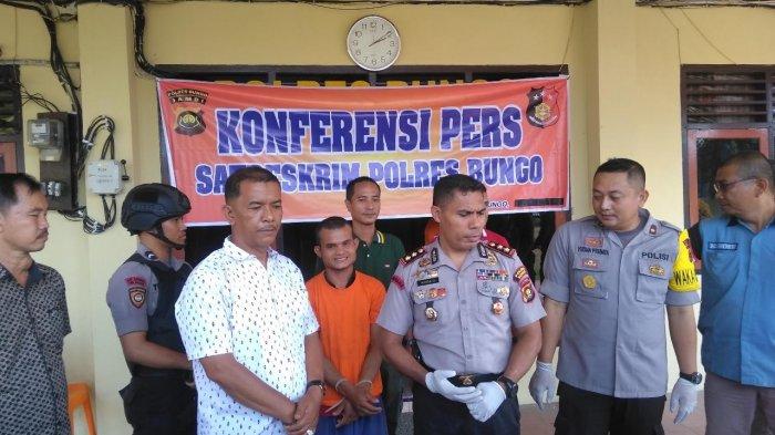 Kapolres Bungo, AKBP Januario Jose Morrais didampingi Wakapolres Bungo, Kompol Yudha Pranata mengungkapkan, pelaku berinisal AMR (24), warga Kampung Benit, Dusun Sungai Mengkuang, Rimbo Tengah, Bungo.