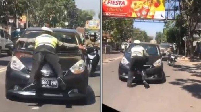 Sebelumnya diberitakan, sebuah video viral di media sosial memperlihatkan seorang polisi lalu lintas menempel di kap mobil hitam yang sedang melaju di tengah jalan.