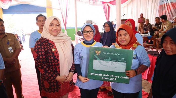 Penyerahan dilakukan Bupati Muarojambi, Masnah Busro, bersama dengan Kepala BPJS Kesehatan Cabang Jambi, Elshe Theresia.