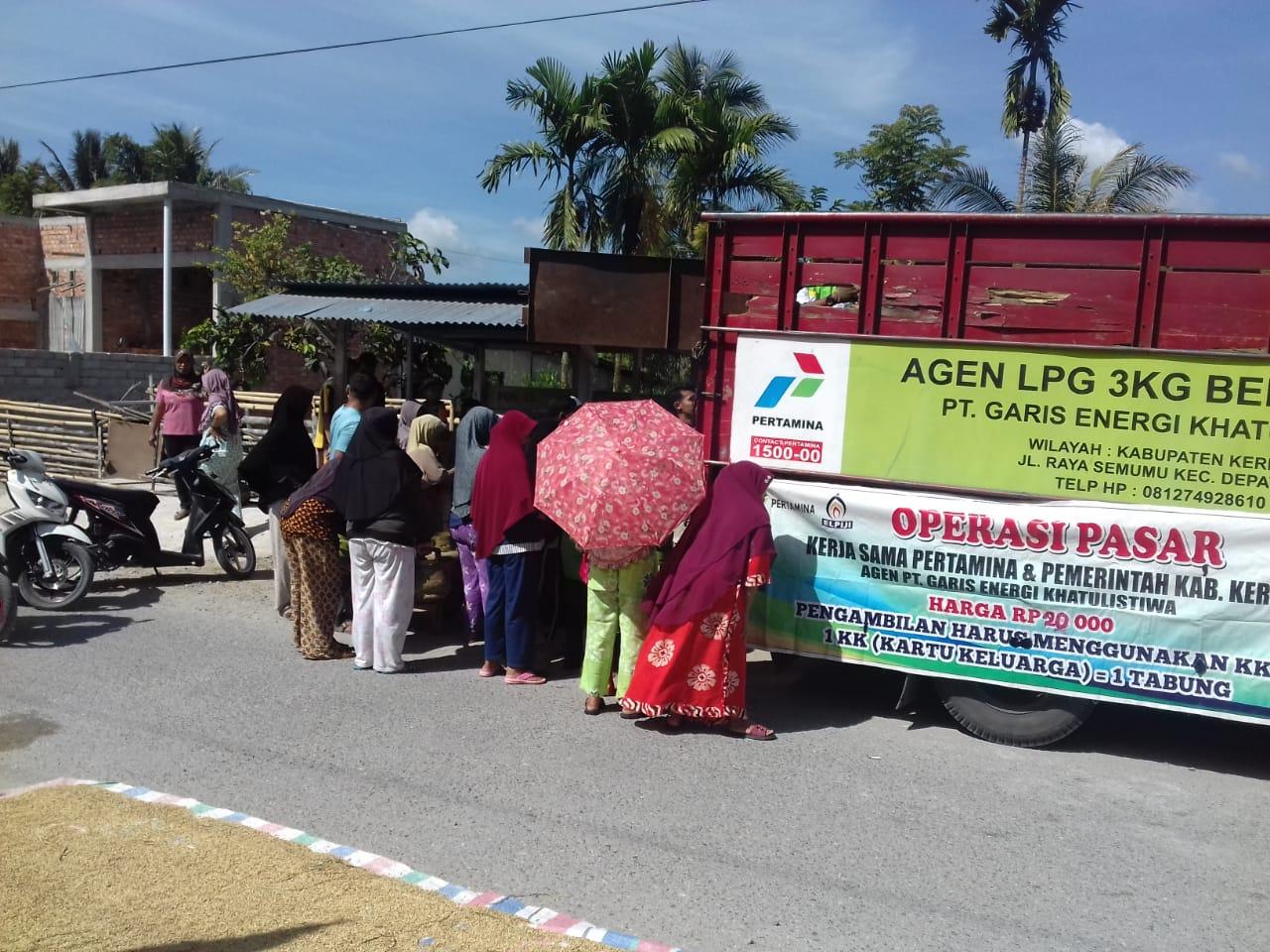 TRIBUNJAMBI.COM, KERINCI - Ratusan warga di Kabupaten Kerinci, tepatnya di Desa Kemantan, Kecamatan Air Hangat Timur, menyerbu operasi pasar gas elpiji 3 Kilogram yang digelar PT. Garis Energi Khatulistiwa.