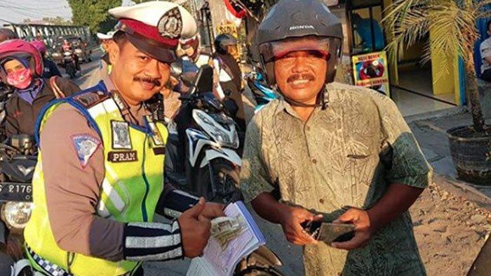 Viral di media sosial foto seorang polisi yang sedang mengecek kelengkapan surat milik seorang pengendara motor, yang ternyata mertua sendiri