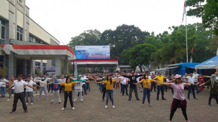TRIBUNJAMBI.COM, JAMBI - Badan Pusat Statistik (BPS) Provinsi Jambi dan Otoritas Jasa Keuangan (OJK) Provinsi Jambi Jumat (20/9) melaksanakan kegiatan senam bersama.