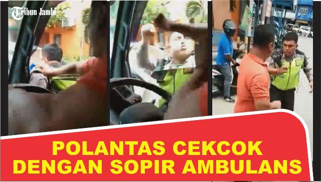 Polantas meminta untuk bersabar, namun sopir ambulans tetap ingin melaju.
