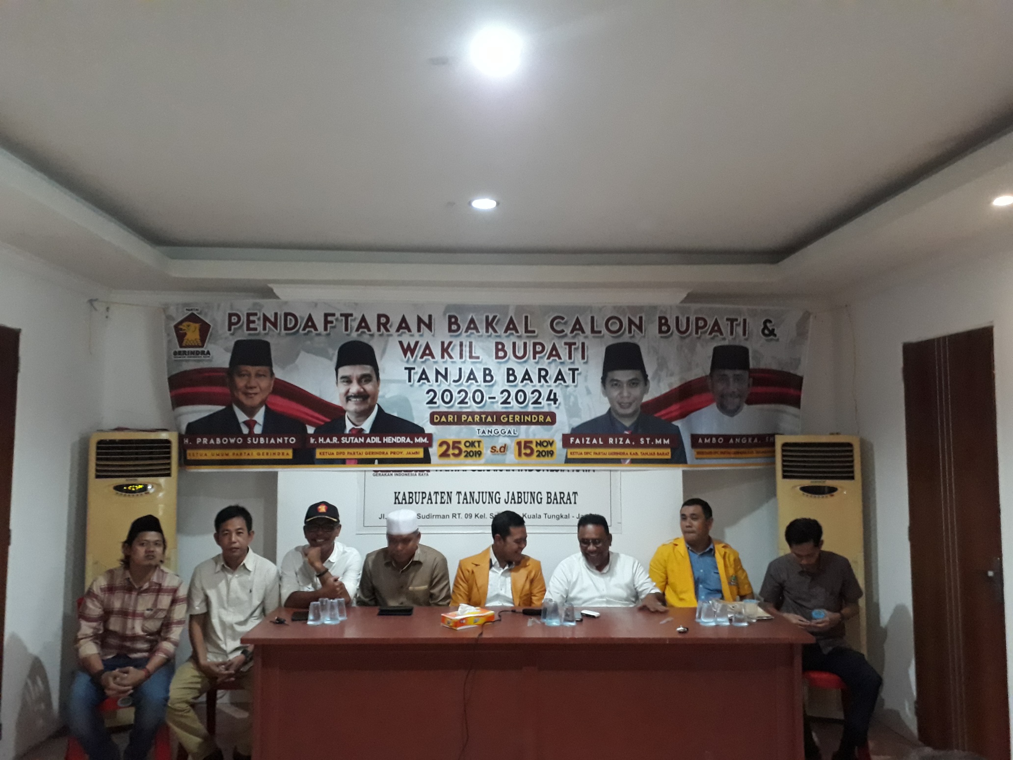 TRIBUNJAMBI.COM, KUALA TUNGKAL - Dewan Pimpinan Cabang (DPC) Partai Gerakan Indonesia Raya (Gerindra), membuka pendaftaran bakal calon bupati dan wakil bupati Tanjung Jabung Barat (Tanjabbar).
