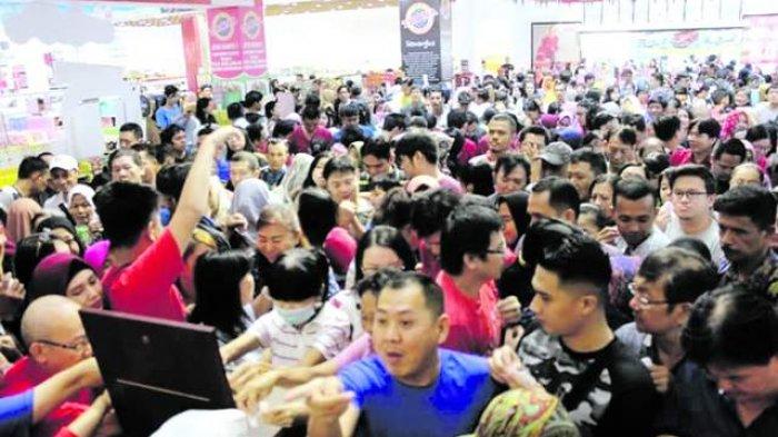 Konsumen Trona JPM berdesakan saat memasukkan struk belanja berhadiah 2 unit motor, Minggu (24/11). Terpilih pelanggan yang beruntung atas nama M. Zamroni dan Atika.