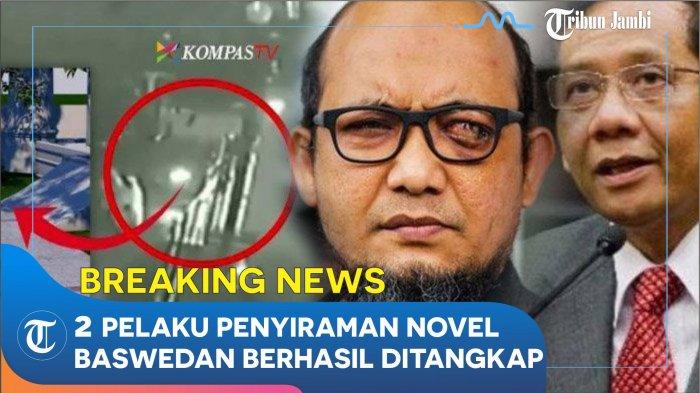 TRIBUNJAMBI.COM - Terungkap alasan Penyidik senior Komisi Pemberantasan Korupsi (KPK), Novel Baswedan ingin bertemu dengan dua pelaku penyiraman air keras terhadapnya yang telah diamankan polisi.