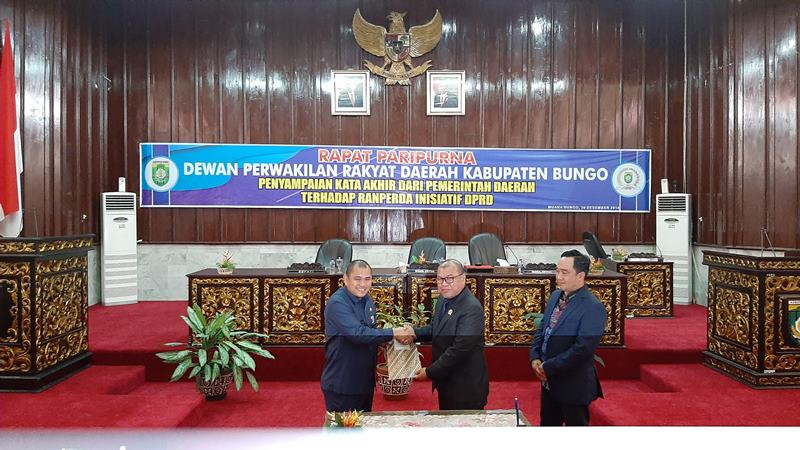 Kelima Ranperda inisiatif tersebut, di antaranya Ranperda tentang Lembaga Adat Melayu (LAM) Bungo, Ranperda tentang badan permusyawaratan dusun (BPD), dan Raperda tentang pemberdayaan dan pengembangan usaha mikro kecil menengah (UMKM).