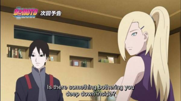 Keluarga Yamanaka adalah salah satu keluarga paling rukun di Boruto. Saat Inojin tak bisa mengeluarkan Choju Giga, Sai dan Ino sama-sama mencoba membantu anak mereka dengan cara sendiri. Jadi tak heran di preview pun Ino dan Sai kembali diperlihatkan. Ino bahkan akan jadi yang mengajarkan Inojin.
