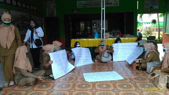 Guru-guru di SDN 02 Kabupaten Sarolangun gelar aksi mogok ngajar, hingga murid terlantar, Senin (17/2).