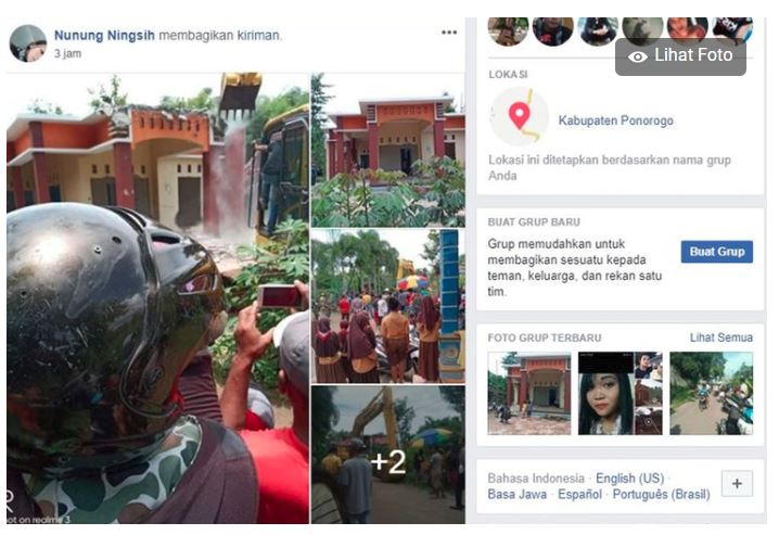 Dalam postingan yang diunggah akun Facebook Nunung Ningsih, juga menyertakan foto dan video proses perobohan rumah yang disaksikan oleh warga sekitar.