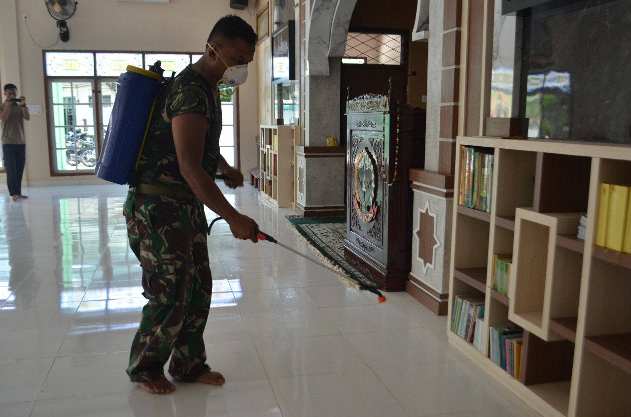 Komando Resor Militer atau Korem 042/Garuda Putih Jambi menggelar aksi bersih-bersih Markas Komando , Senin (16/3/2020) untumencegah virus corona