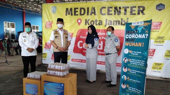 Wali Kota Jambi Syarif Fasha menerima langsung bantuan tersebut, bertempat di Posko Gugus Tugas Penanganan Covid-19 (Mako Damkar) Kota Jambi, Rabu (22/4/2020).