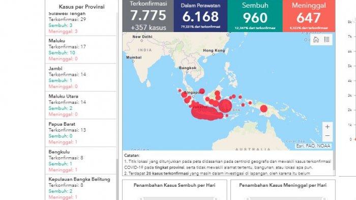 Update Kamis (23/4) - 7.775 Terkonfirmasi Positif Covid-19, Bertambah 357 Kasus, Jambi Jadi 14 Kasus