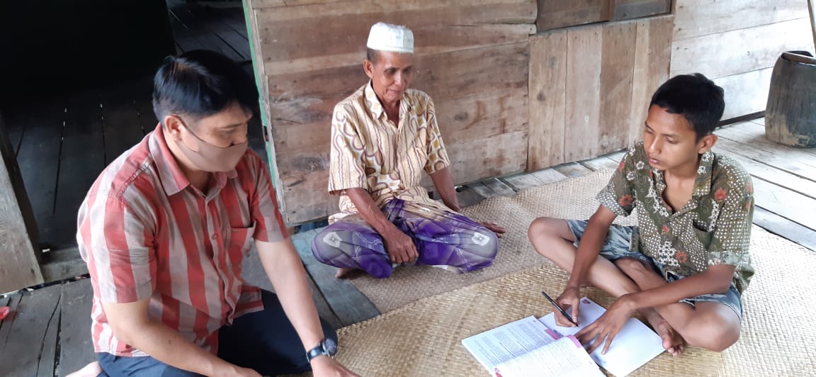 Lain lagi dengan Syafyendri, guru IPS SMPN 7 Batang Hari, Desa Selat, Batang Hari, Jambi. Saat Ia menyelenggarakan pembelajaran daring, ada 1 dari 23 siswa yang tidak bisa mengikuti. Ia berinisiatif untuk menemukan alamat tinggal siswa tersebut yaitu Indra Bayu, (14 th). Tidak lupa, Syafyendri juga memakai masker dan tetap menjaga jarak.