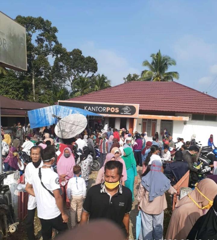 Seperti di Kecamatan Limun, ratusan warga yang menerima bantuan mulai sesaki Kantor Pos di Desa Pulau Pandan.