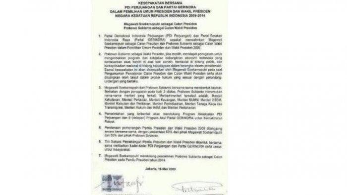 Perjanjian Batu Tulis sesungguhnya berisikan kesepakatan Megawati akan mendukung Prabowo pada Pemilu 2014 lalu.