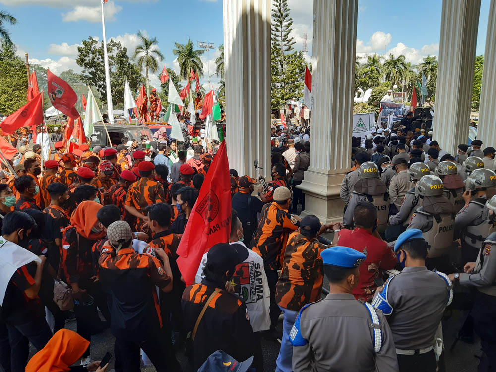 Demo aliansi dari berbagai Ormas dan OKP di Provinsi Jambi ini dikawal ketat oleh aparat kepolisian dari Polda Jambi.