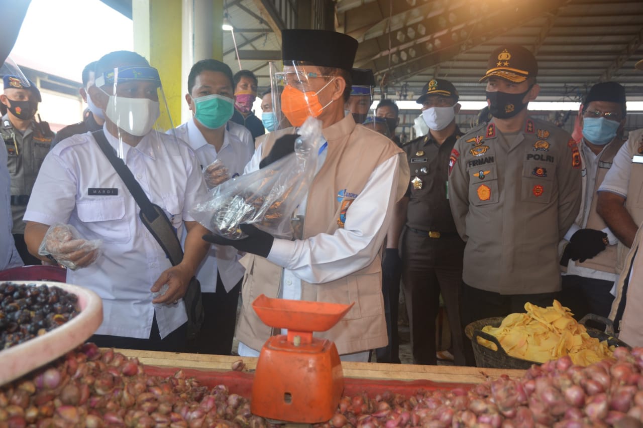 TRIBUNJAMBI.COM, JAMBI – Gubernur Jambi, Dr.Drs.H.Fachrori Umar,M.Hum., bersama Kapolda Jambi, Irjen Pol Drs.Firman Shantyabudi,M.Si., secara langsung melakukan peninjauan langsung ke Pasar Modern Angso Duo guna memastikan ketersediaan pangan yang ada di Provinsi Jambi menjelang Hari Raya Idul Adha 1441 H Tahun 2020 ditengah masih melandanya Covid-19 secara global, khususnya di Provinsi Jambi, Rabu (29/07).